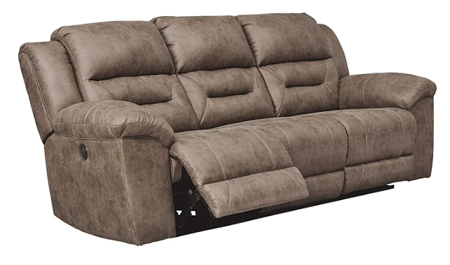 For households that need easy maintenance and a classic leather-look, the Stoneland is a staple. It pairs durable faux leather with supportive cushions and dual-sided manual recline. If you want a strong “everyday workhorse” for a family room—without the higher cost of a sofa recliner electric—Stoneland is a safe, stylish bet.